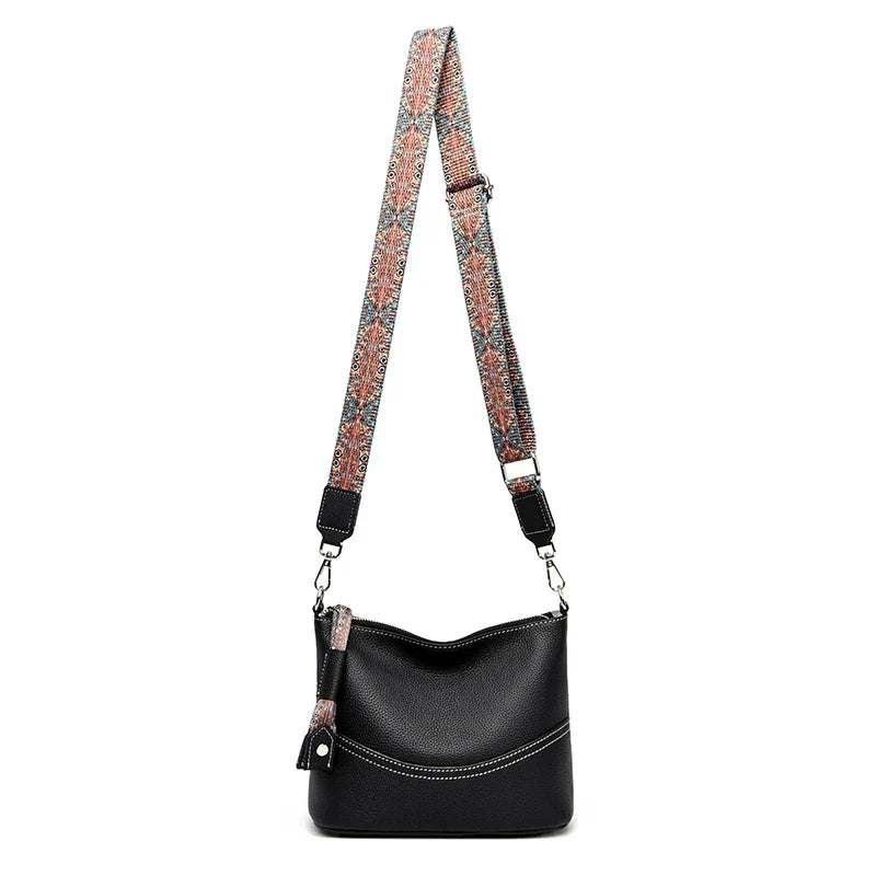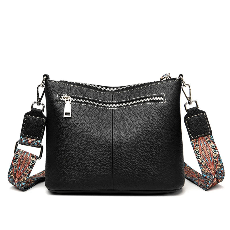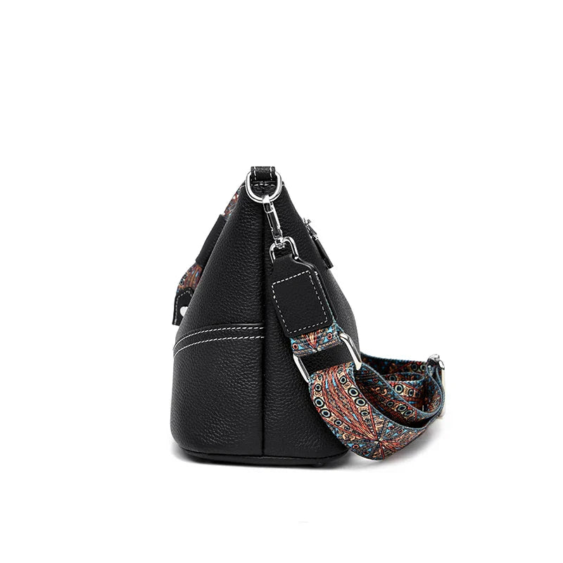 Elevate your daily style with this versatile black crossbody bag for women. Designed for both comfort and fashion, it features an adjustable wide strap that can be worn as a shoulder bag or crossbody, accommodating your personal preference. The bag's spacious interior and multiple pockets ensure your essentials—like your phone, makeup, notebook, and keys—are neatly organized and easily accessible.