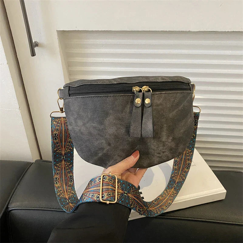 Embrace effortless boho style with this chic crossbody bag, featuring a wide ethnic strap for added comfort and flair. Crafted from soft, durable materials, it offers a spacious interior to keep your essentials organized. The vibrant, woven strap adds a unique touch, making it perfect for daily wear, shopping trips, or casual outings. Its versatile design complements both casual and dressy outfits, ensuring you stay stylish on the go.