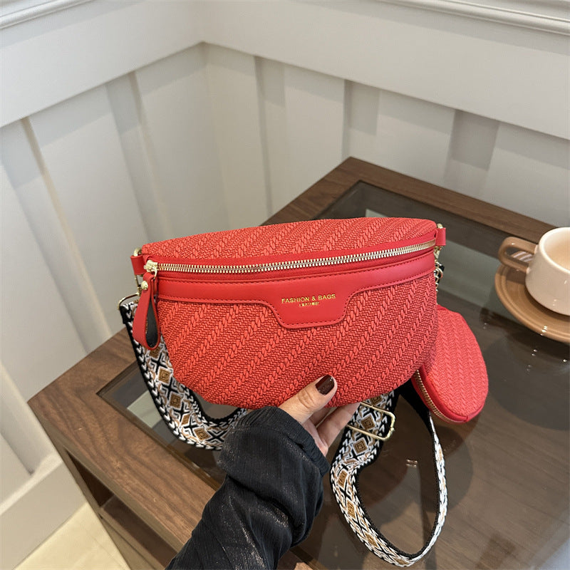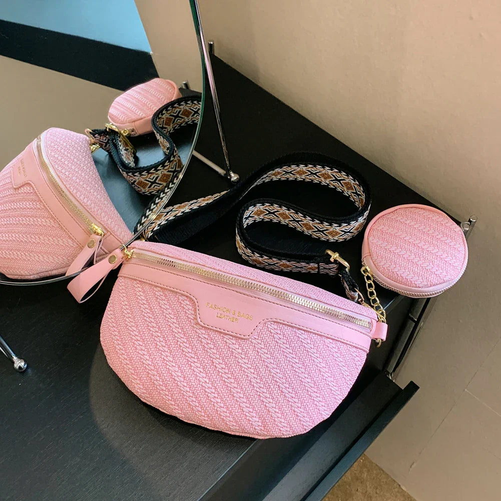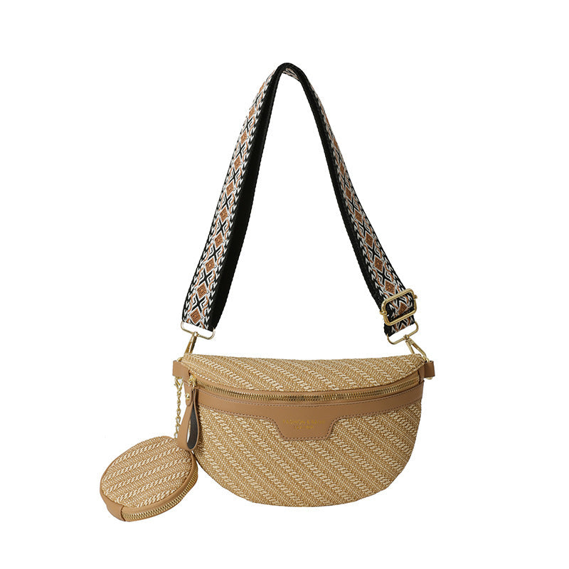 Boho Raffia Crossbody Fanny Pack with Mini Pouch – Adjustable Waist & Shoulder Bag for Women