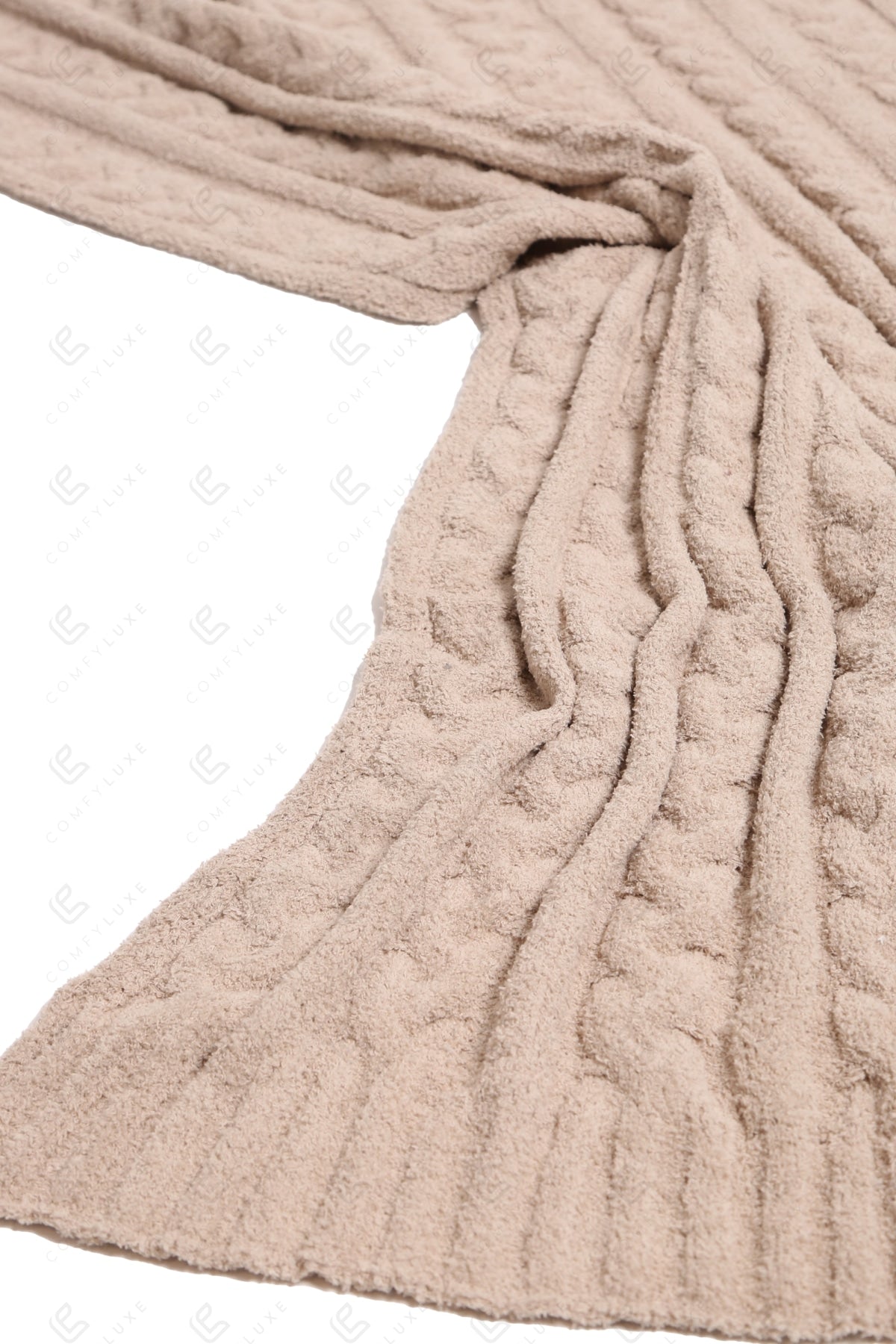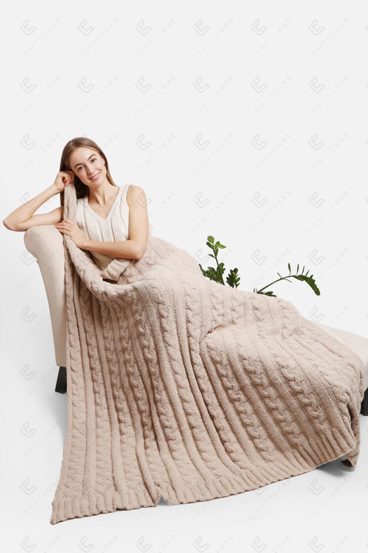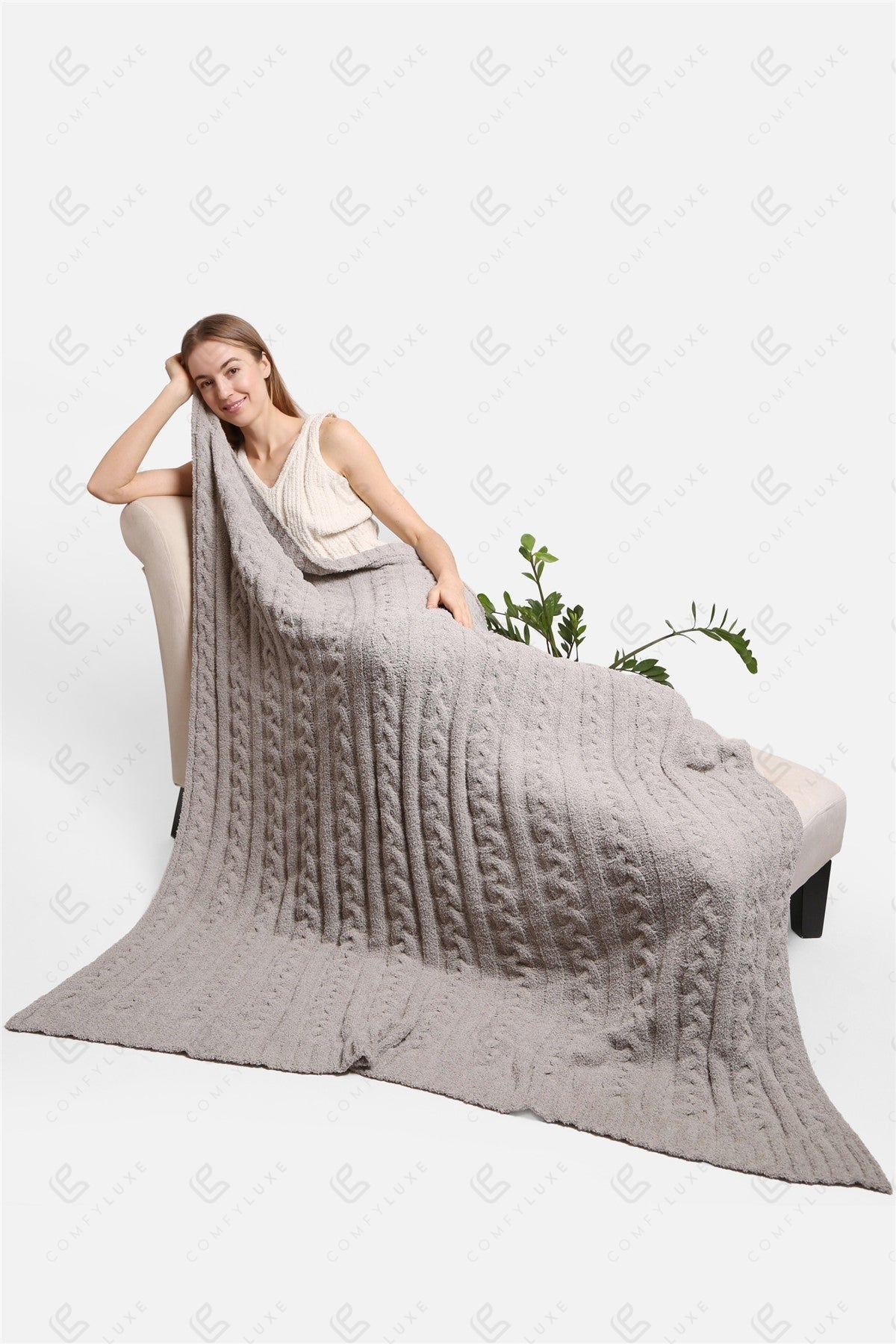 Wrap yourself in warmth and style with this Chunky Cable Knit Fleece Throw Blanket. Crafted from 100% polyester microfiber, it offers a super-soft texture and cozy warmth, making it perfect for chilly evenings. The thick cable knit design adds a touch of elegance to your living space, whether draped over your sofa, bed, or lounge area. Measuring approximately 130x140 cm, it's versatile enough for various uses. Easy to care for, this blanket is machine washable on a cold setting; simply lay flat to dry. Ideal for creating a snug atmosphere during winter nights or as a stylish home accent.