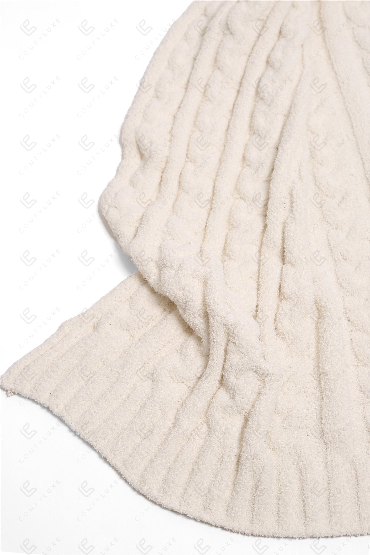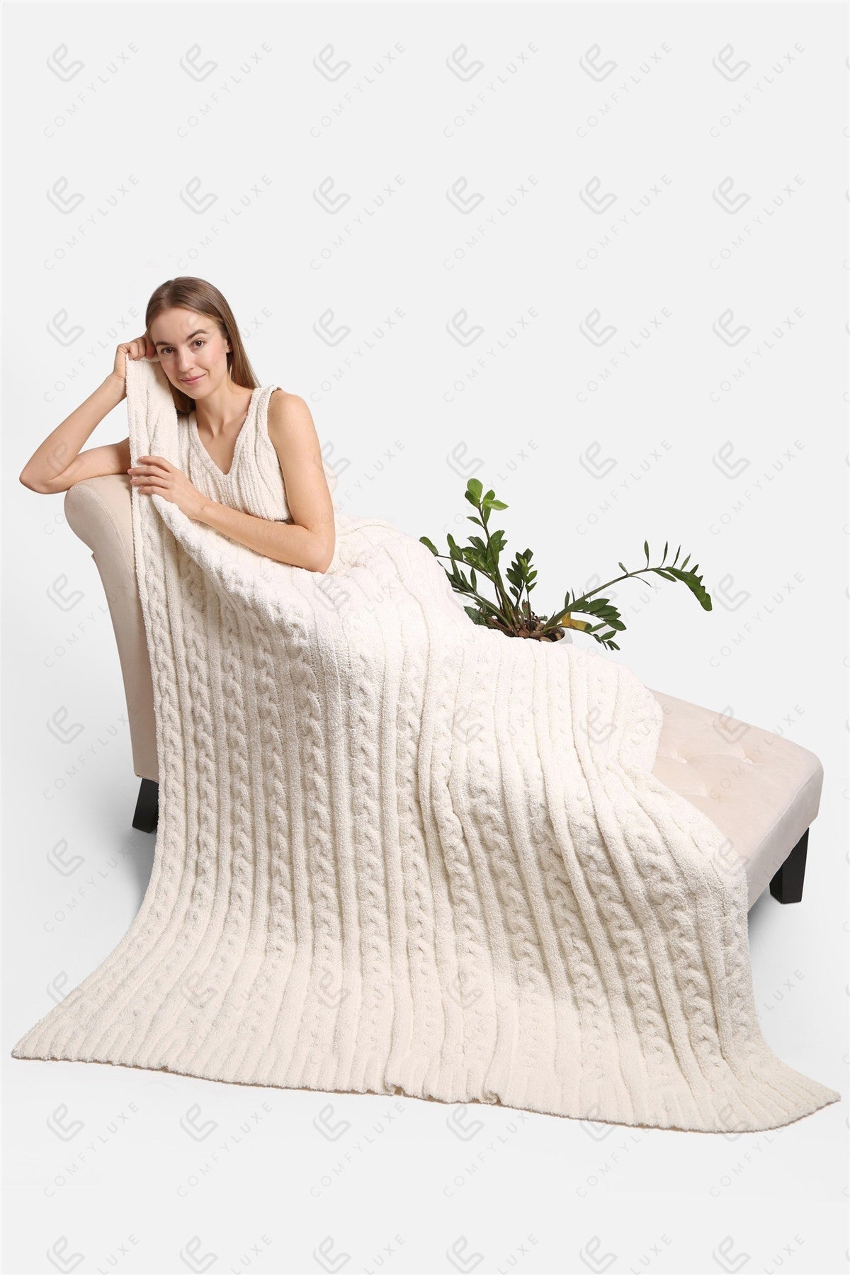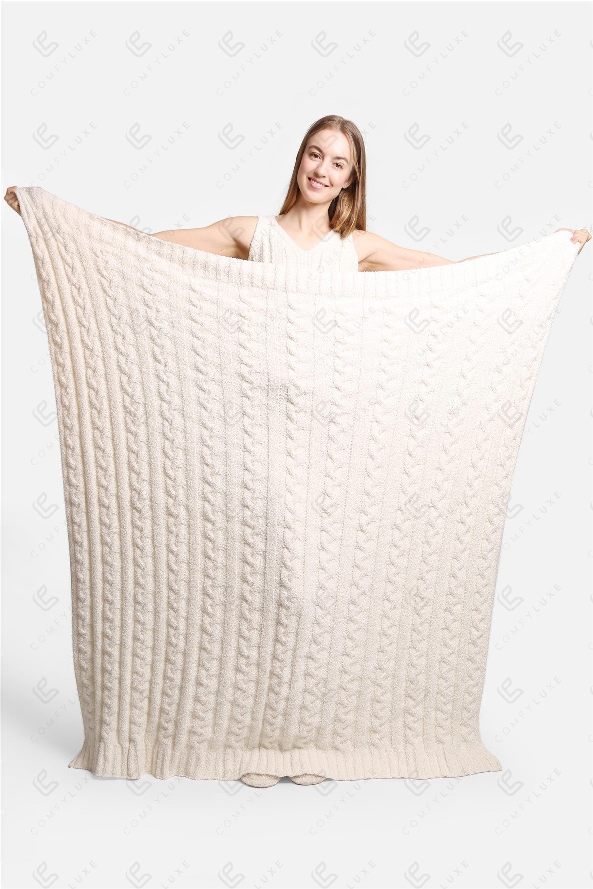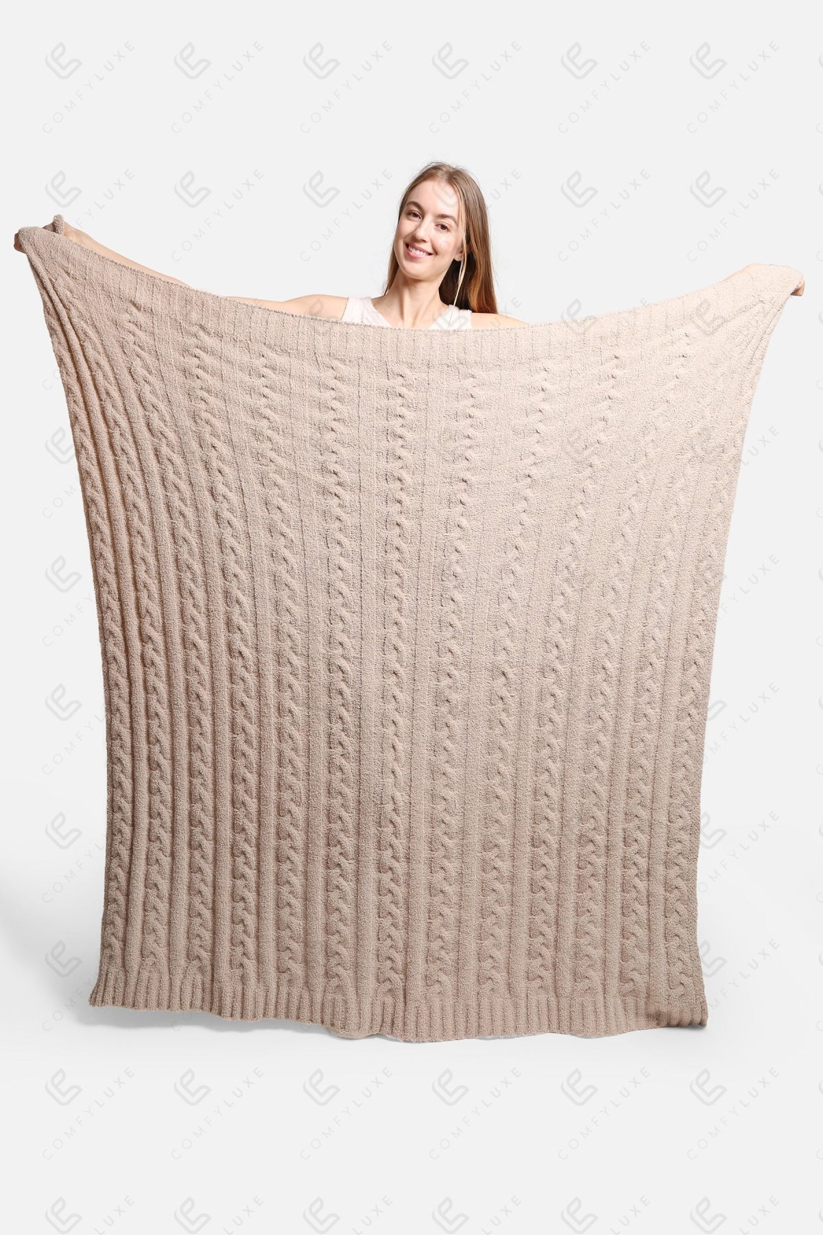 Wrap yourself in warmth and style with this Chunky Cable Knit Fleece Throw Blanket. Crafted from 100% polyester microfiber, it offers a super-soft texture and cozy warmth, making it perfect for chilly evenings. The thick cable knit design adds a touch of elegance to your living space, whether draped over your sofa, bed, or lounge area. Measuring approximately 130x140 cm, it's versatile enough for various uses. Easy to care for, this blanket is machine washable on a cold setting; simply lay flat to dry. Ideal for creating a snug atmosphere during winter nights or as a stylish home accent.