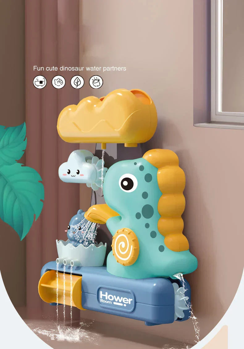 Transform bath time into an exciting adventure with this Dinosaur Bath Toy for Toddlers. Designed with a charming dinosaur and cloud motif, this engaging water play toy captivates young imaginations. Simply pour water into the top, and watch as it activates spinning wheels and flowing streams, providing endless entertainment.
