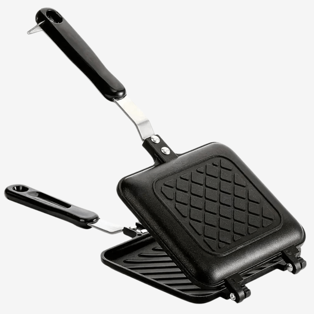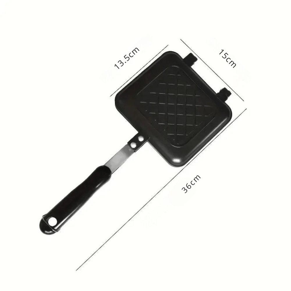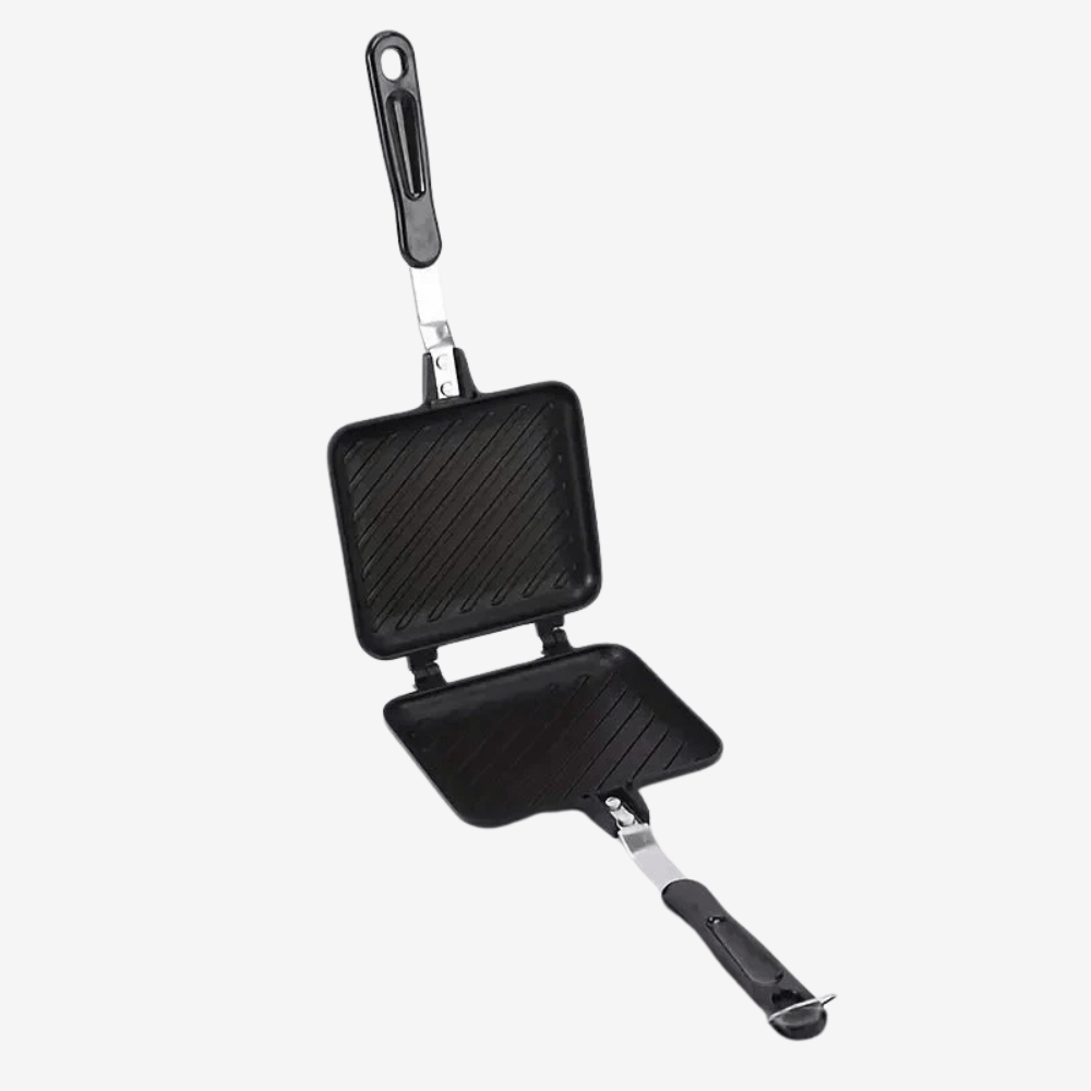 Make delicious grilled sandwiches and panini in minutes with this Double Sandwich Maker designed for gas stoves. This nonstick double grill pan features a smart flip-clamp system that presses and cooks both sides simultaneously—no electric grill needed. The durable nonstick coating lets you cook with little or no oil, making it ideal for healthy cooking. Compact, lightweight, and portable, it’s perfect for home kitchens, camping, or travel.