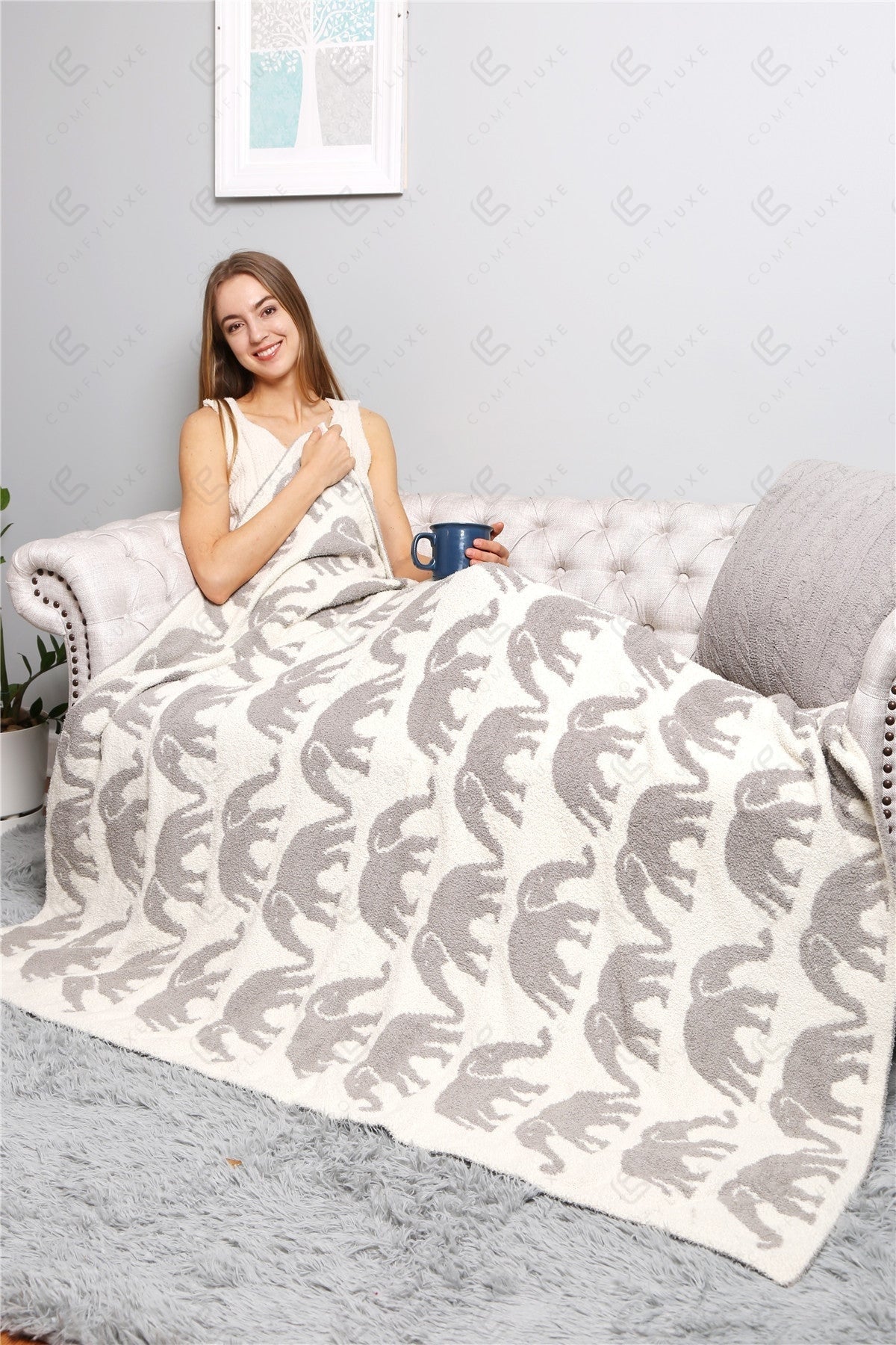 Crafted from 100% polyester microfiber, it offers a plush, anti-pill surface that resists wrinkling, ensuring long-lasting softness and durability. The playful elephant pattern adds a whimsical touch, making it an ideal gift for animal lovers or anyone seeking unique home decor.