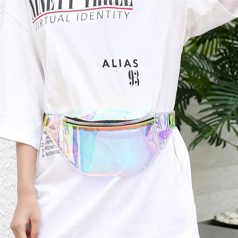 Whether you're dancing under neon lights or exploring new destinations, this holographic fanny pack keeps your belongings safe and your style on point. Don't miss out on this must-have accessory for your next outing.