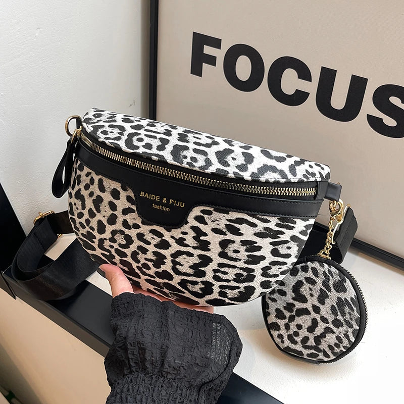 Add a touch of wild elegance to your ensemble with this Leopard Print Crossbody & Waist Bag – where fashion meets functionality.