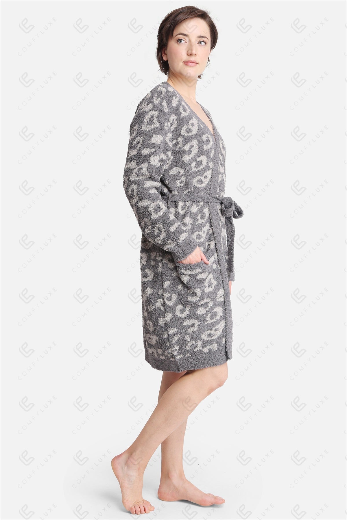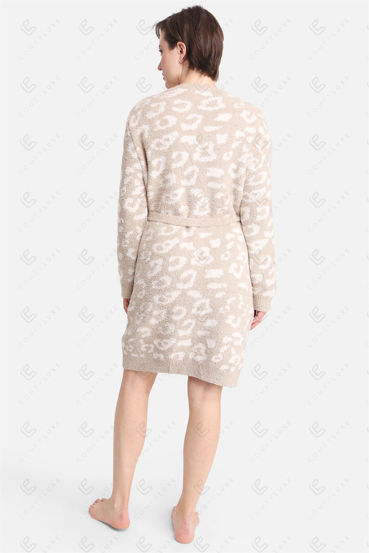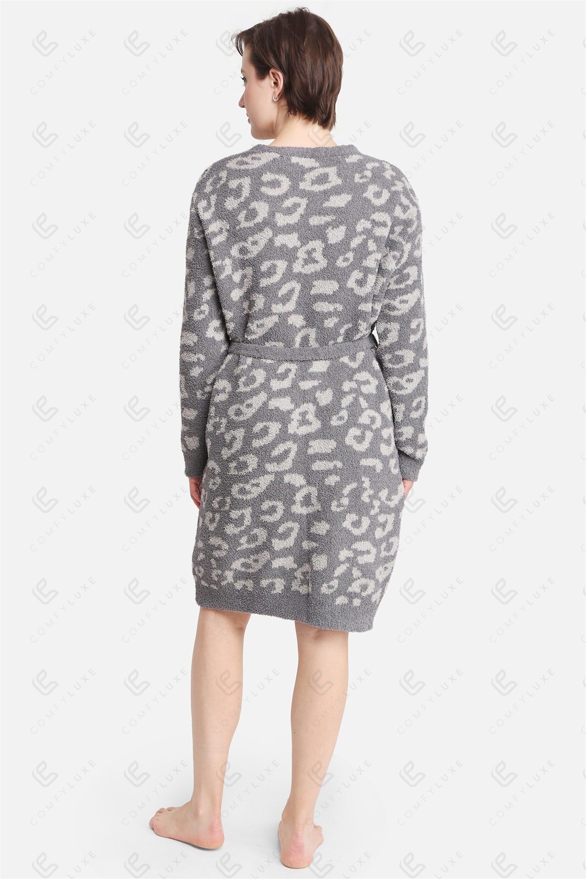 Indulge in the ultimate comfort with our Luxe Leopard Print Microfiber Robe. Crafted from premium 100% polyester microfiber, this robe offers a plush, breathable feel against the skin, making it perfect for lounging at home or unwinding after a long day.
