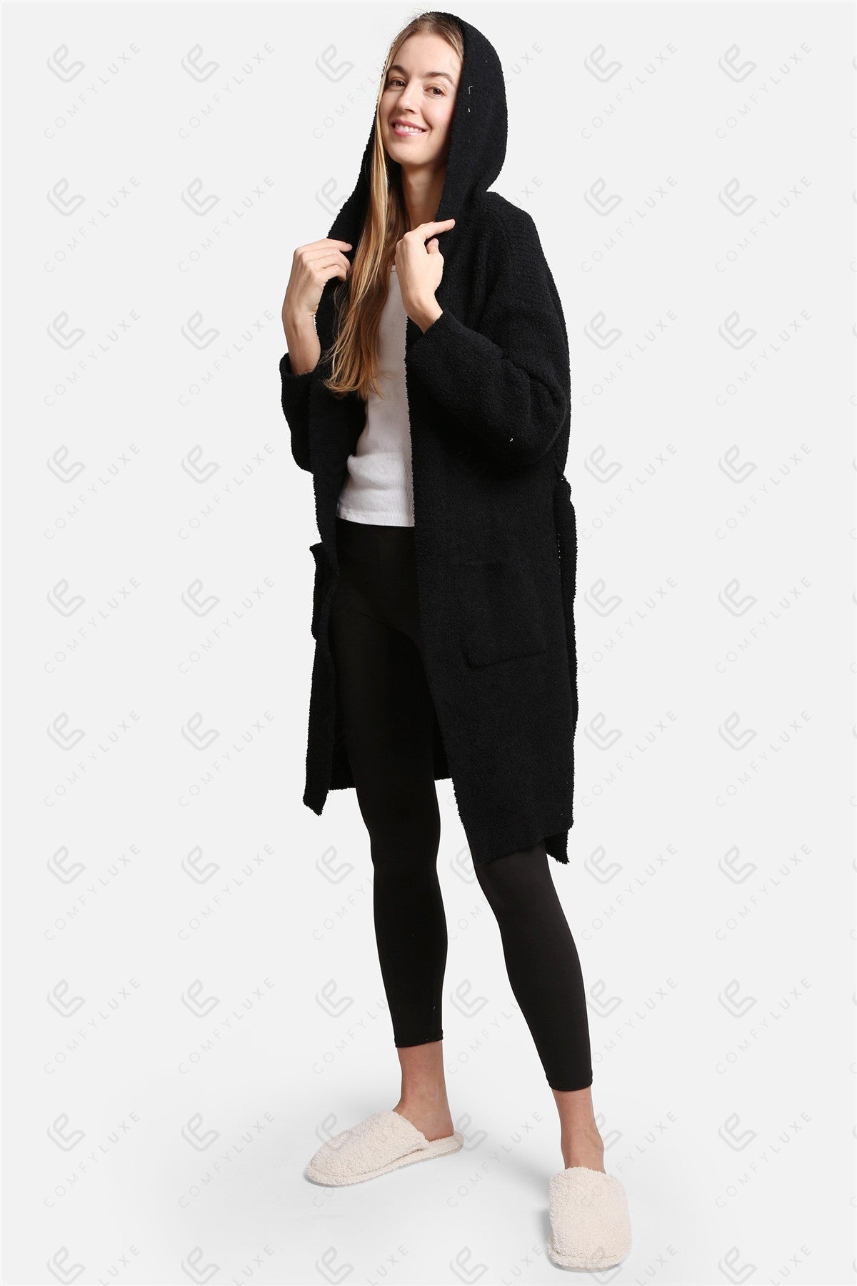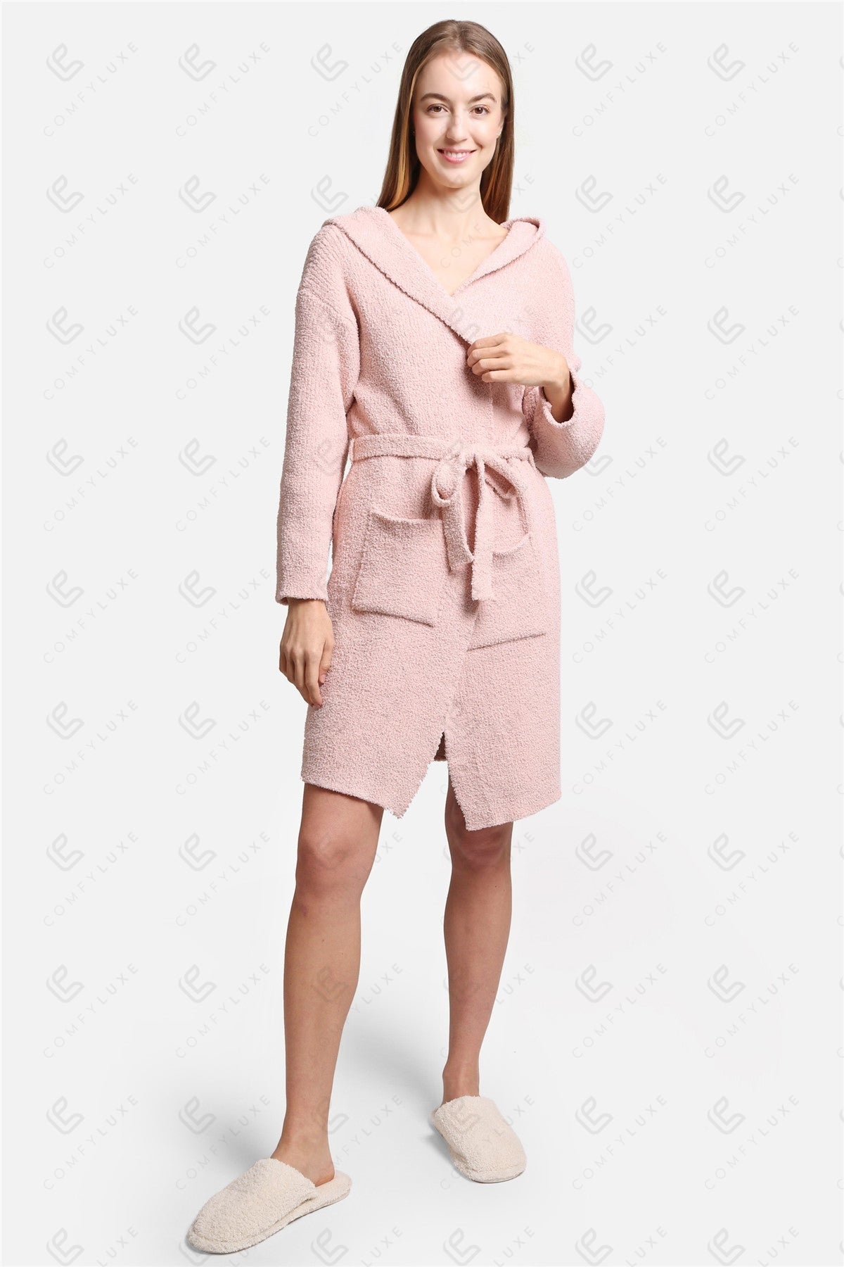 Luxurious Hooded Microfiber Bathrobe – Ultra-Soft, Lightweight Spa Robe with Front Pockets & Adjustable Belt