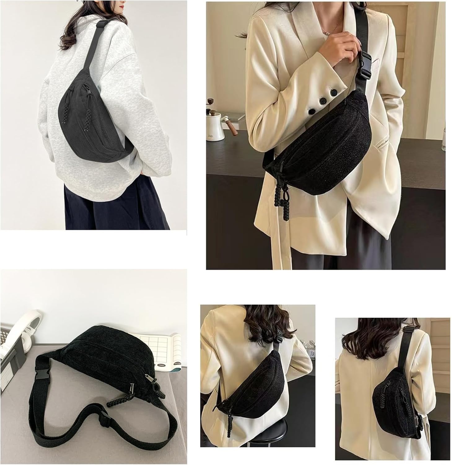 Elevate your daily style with this sleek black corduroy crossbody bag, designed for both fashion and function. Crafted from premium corduroy, it offers a soft, ribbed texture that complements any outfit.