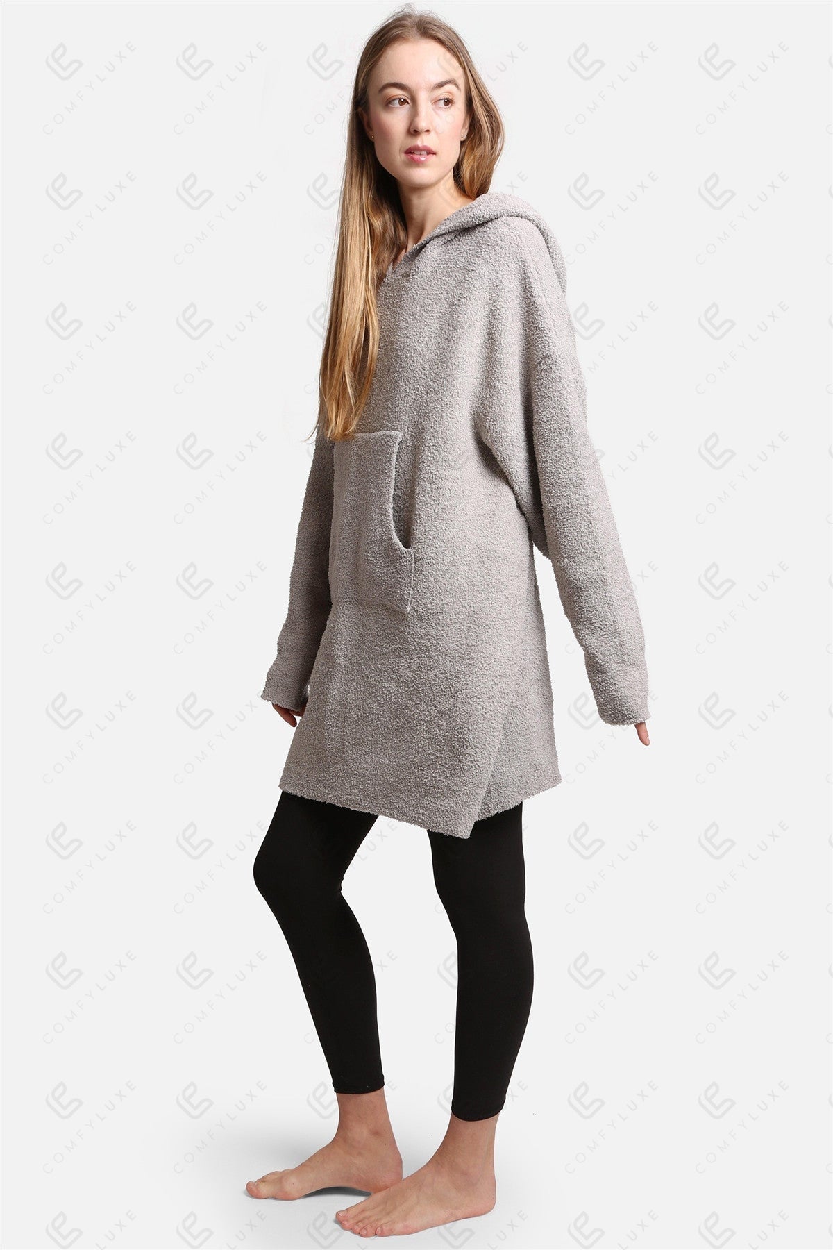 Experience unparalleled comfort with our Oversized Sherpa Fleece Wearable Blanket Hoodie. Crafted from premium microfiber fleece and lined with plush sherpa, this hoodie offers a cozy embrace perfect for lounging, reading, or watching TV. Its generous fit ensures freedom of movement, while the large hood and kangaroo pocket add functionality and warmth. Ideal for chilly evenings, this hoodie is a must-have for those seeking a blend of style and comfort.