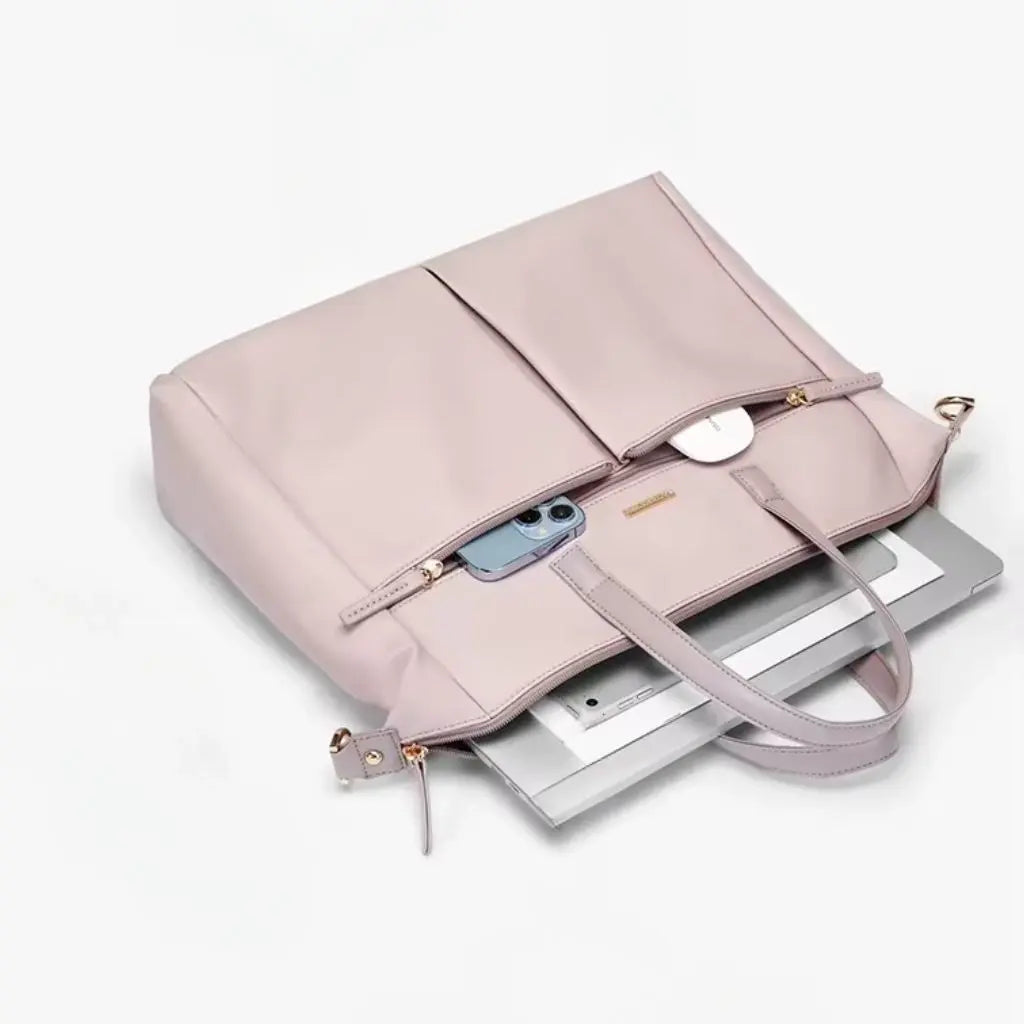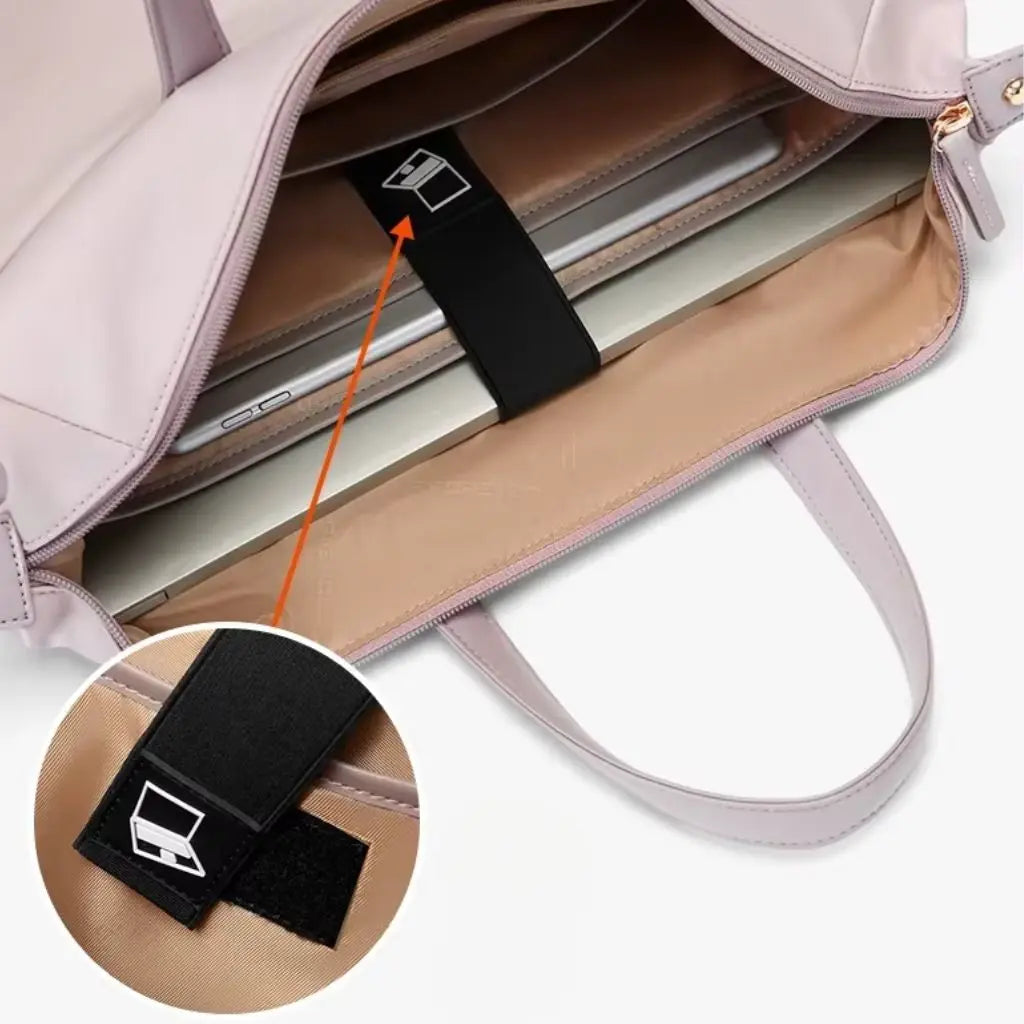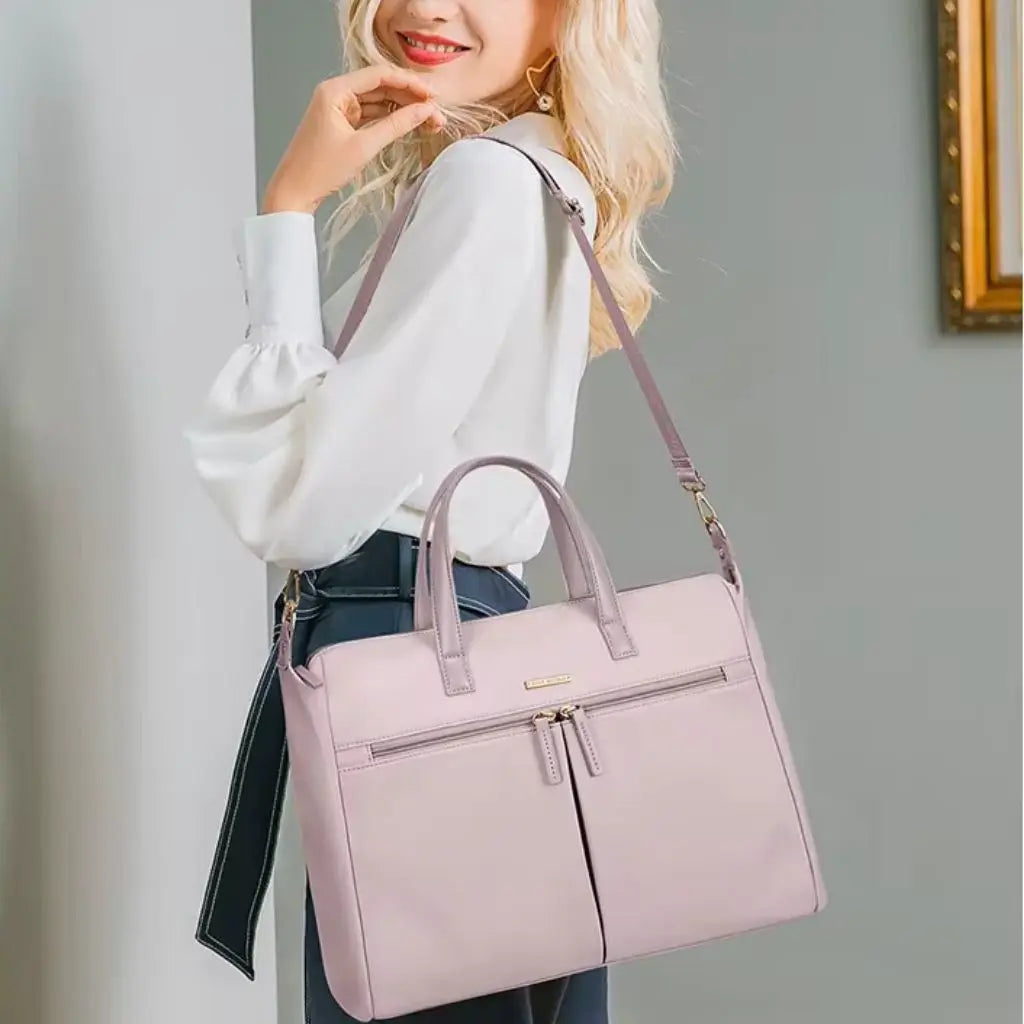 Elevate your daily commute with this chic pink 15.6-inch laptop bag designed for women. Crafted from durable, water-resistant materials, it ensures your laptop stays safe from scratches and minor impacts. The soft pink hue adds a touch of elegance, making it suitable for both professional and academic settings. With a spacious main compartment and additional pockets, it offers ample storage for your laptop, charger, and other essentials. The comfortable shoulder straps and lightweight design make carrying effortless. Whether heading to the office, class, or a business meeting, this laptop bag combines functionality with style.