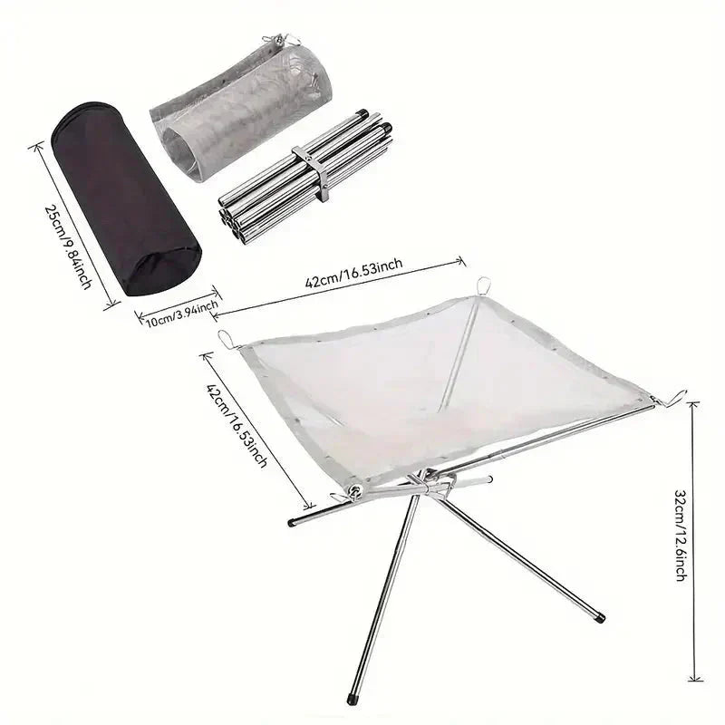 Experience the warmth and ambiance of a campfire wherever you go with this portable foldable fire pit. Crafted from heat-resistant stainless steel, it offers a stable and safe platform for wood fires, BBQs, or cooking stoves. Its collapsible design ensures easy storage and transport, making it perfect for camping, hiking, backyard gatherings, or beach outings. Set up in seconds and pack away effortlessly into the included carry bag.