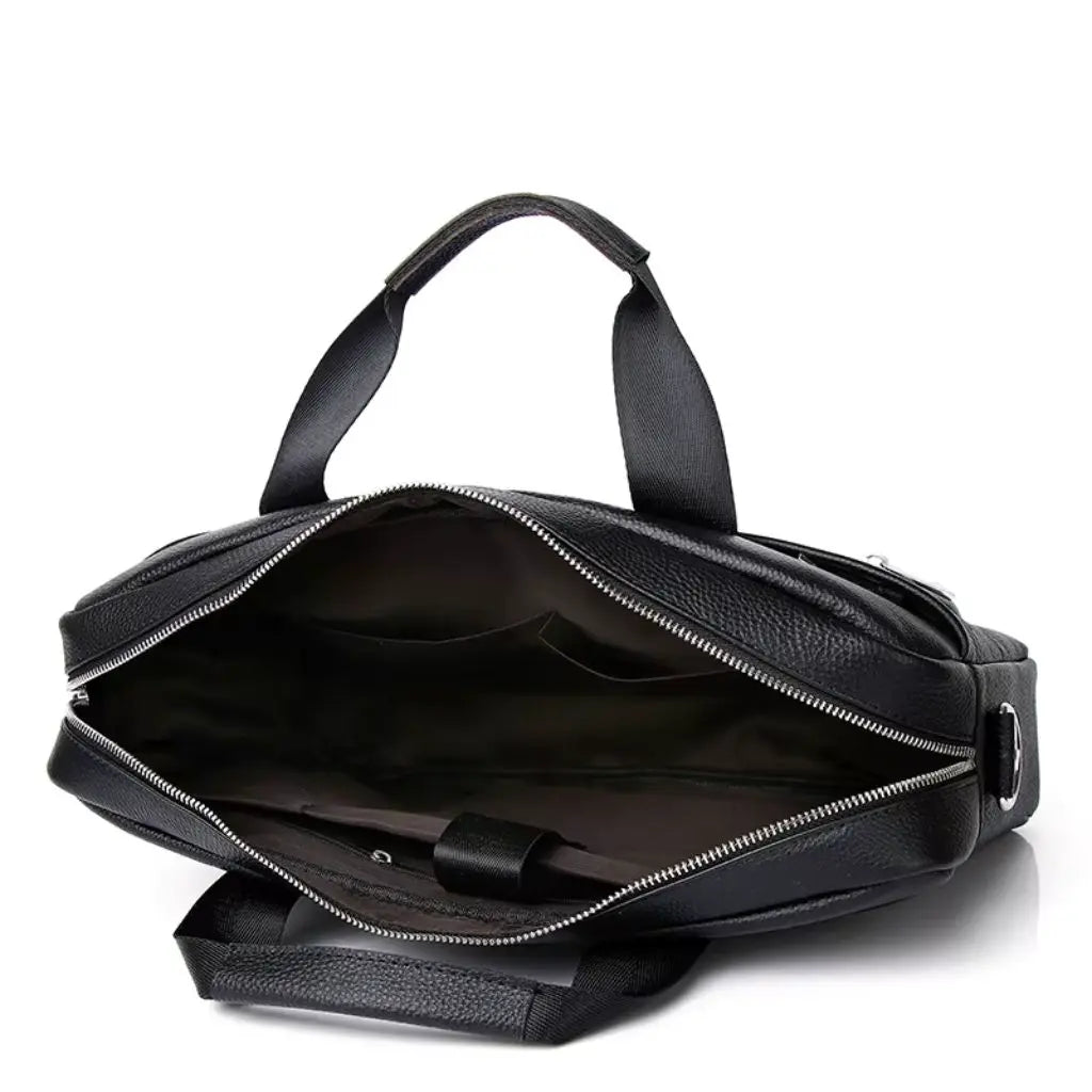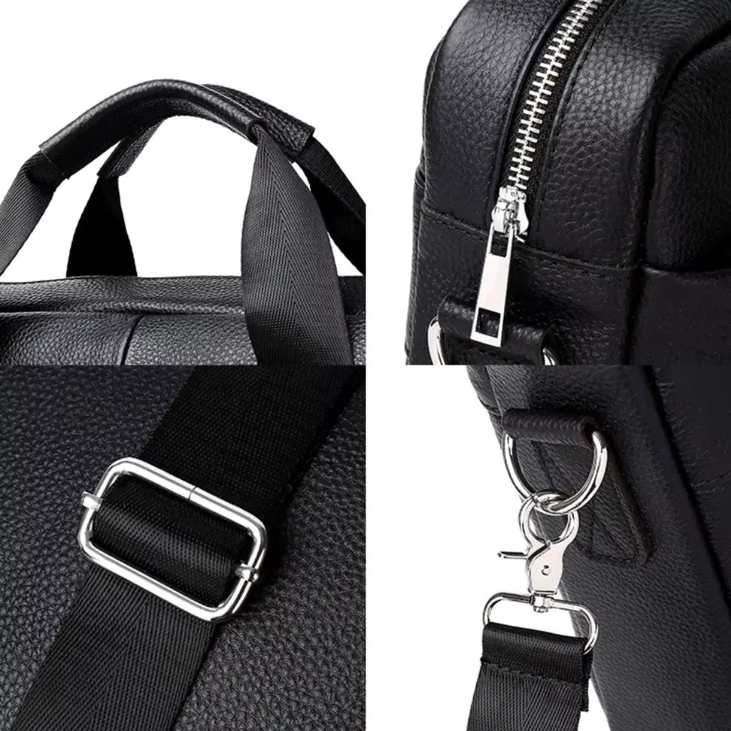 Elevate your professional style with this premium black leather laptop bag, designed to accommodate laptops up to 15.6 inches. Crafted from high-quality, water-resistant leather, this briefcase offers durability and protection for your tech essentials.