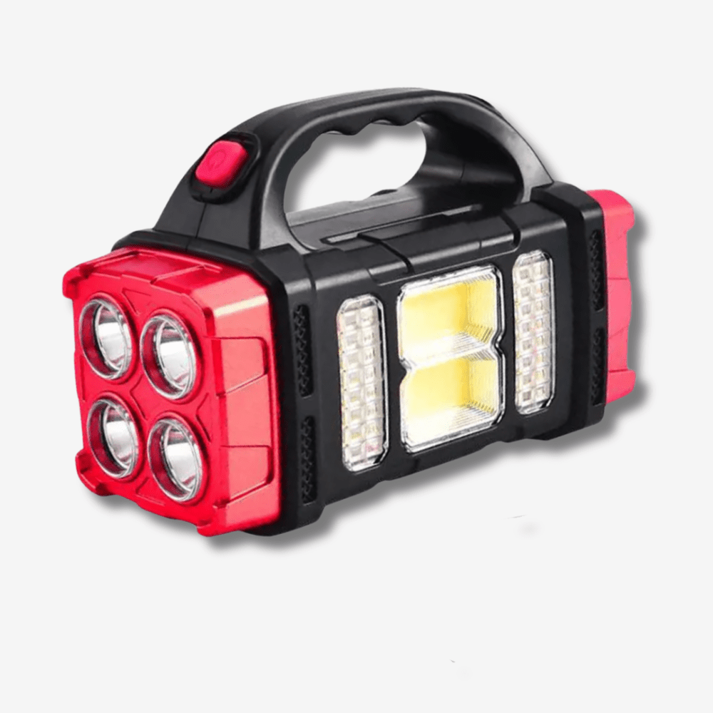 Illuminate any space with this powerful rechargeable LED work light / floodlight, delivering up to 10,000 lumens brightness. Featuring 4 front LED spots plus a COB side light, it’s ideal for construction, camping, emergency use, and outdoor adventures. The built-in USB rechargeable battery allows hours of cordless operation, and you can even use it as a power bank to charge your phone. With an IPX4 water resistance rating, it performs reliably under rain or damp conditions. The rugged, ergonomic body and handle ensure a comfortable grip and durability in demanding environments. Whether you need a portable flood light, a workshop lamp, or a dependable outdoor spotlight, this multifunctional LED powerhouse has you covered.