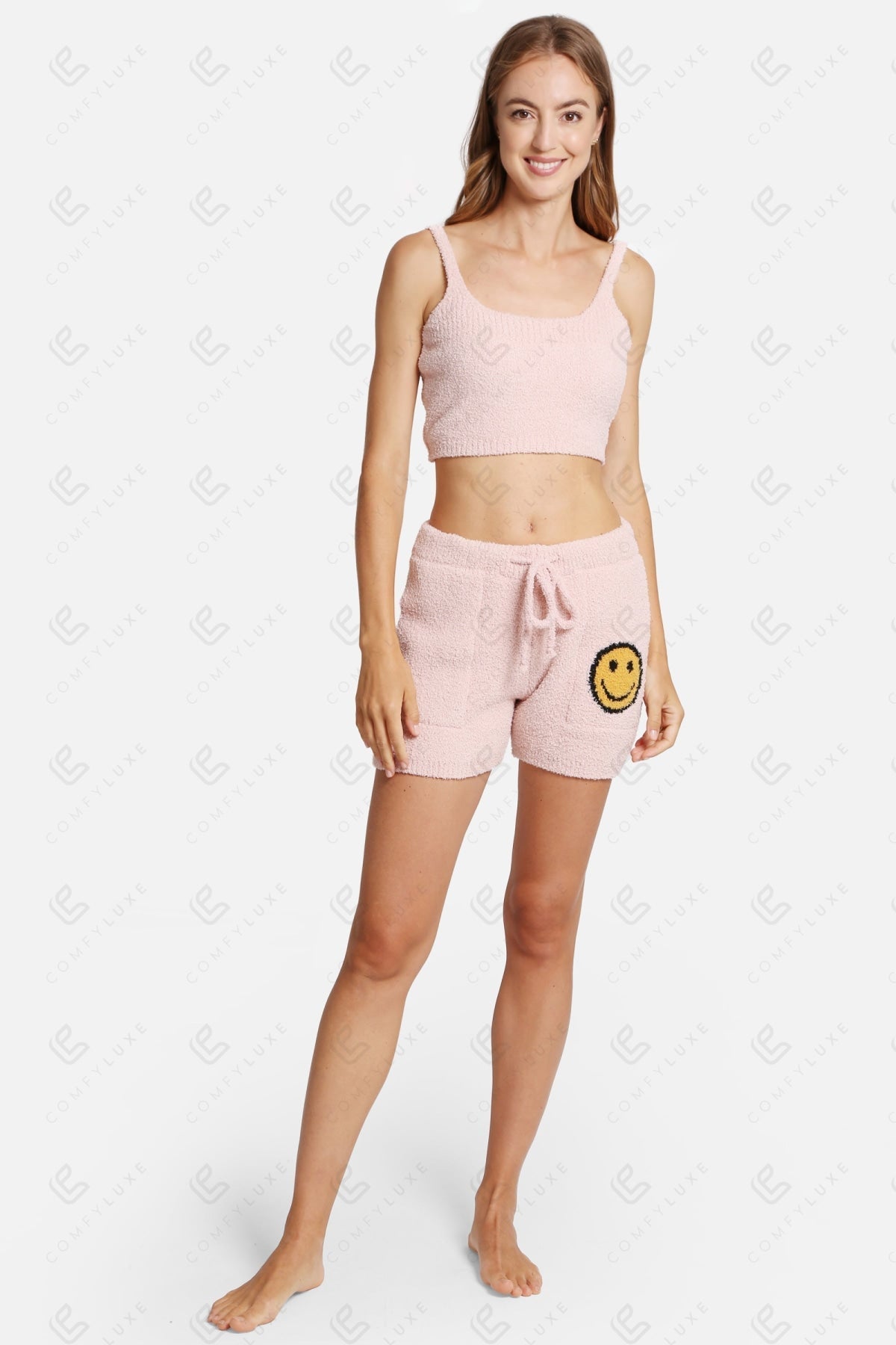 Smiley Print Women’s Lounge Shorts – Cozy Drawstring Loungewear with Pockets