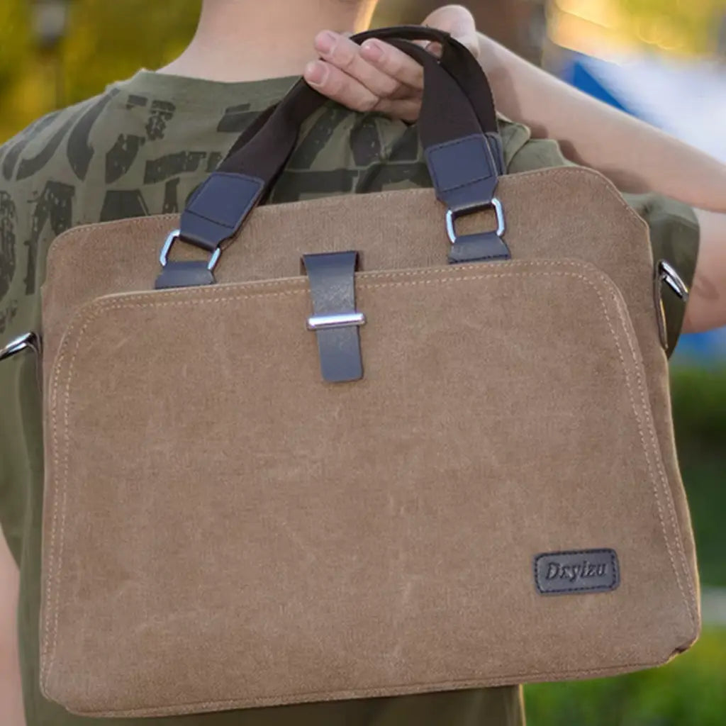 Elevate your daily commute with our Stylish Brown Canvas Laptop Bag, designed for professionals and students alike. Crafted from high-quality, lightweight canvas, this bag offers a perfect blend of durability and style. Its spacious main compartment comfortably fits laptops up to 15.6 inches, along with documents and essentials. Multiple interior pockets ensure organized storage, keeping your items easily accessible. The sturdy canvas material is not only eco-friendly but also resistant to wear and tear, making it ideal for everyday use. Whether heading to the office, campus, or a casual outing, this versatile tote complements any outfit. Experience the convenience and elegance of our brown canvas laptop bag – your go-to accessory for work, study, and beyond.
