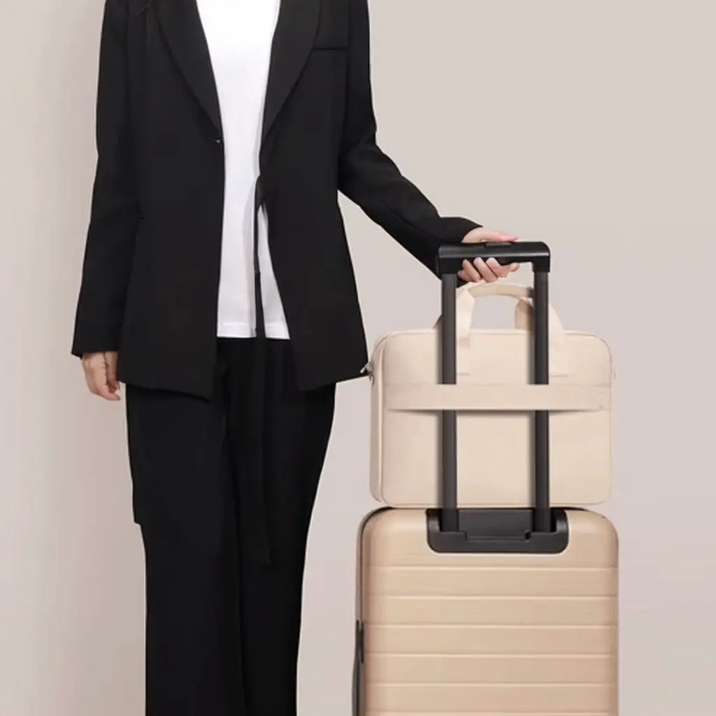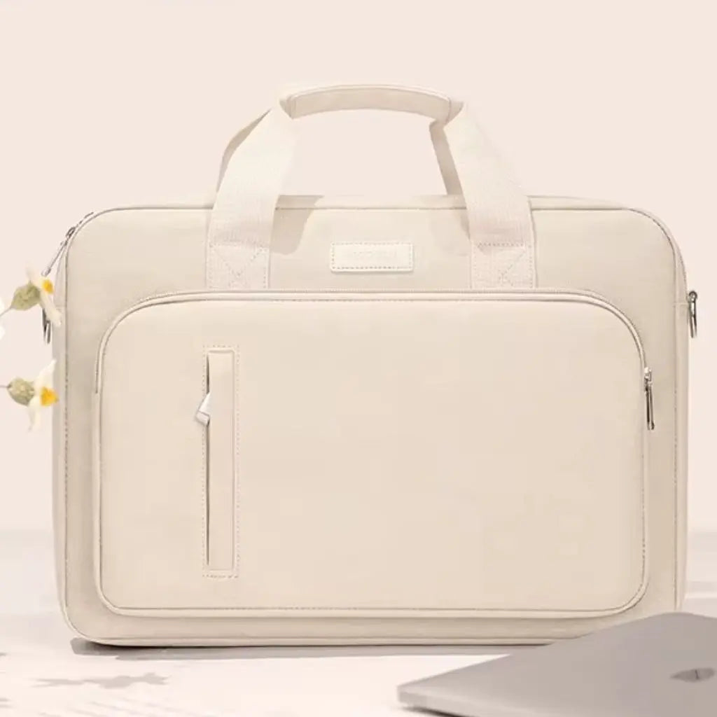 Elevate your daily commute with this chic and functional laptop bag, designed specifically for women. Crafted from durable, water-resistant materials, it ensures your laptop stays protected in all weather conditions. The spacious main compartment comfortably fits laptops ranging from 13" to 15", making it versatile for various devices. Available in soft pink, neutral beige, and elegant gray, it effortlessly complements any outfit. Organize your essentials with ease, thanks to the thoughtfully designed interior pockets. Whether you're heading to the office, attending classes, or traveling, this bag offers both style and practicality. The comfortable shoulder straps and detachable crossbody strap provide flexible carrying options, ensuring comfort throughout your day. Choose this laptop bag for a blend of elegance, functionality, and durability.