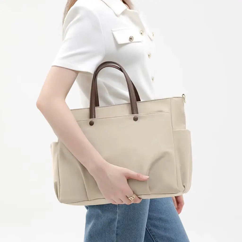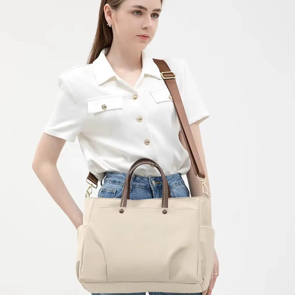 Elevate your daily commute with this chic 15.6-inch women's laptop bag, blending sophistication with functionality. Crafted in timeless off-white and warm brown hues, it adds a touch of elegance to any outfit.