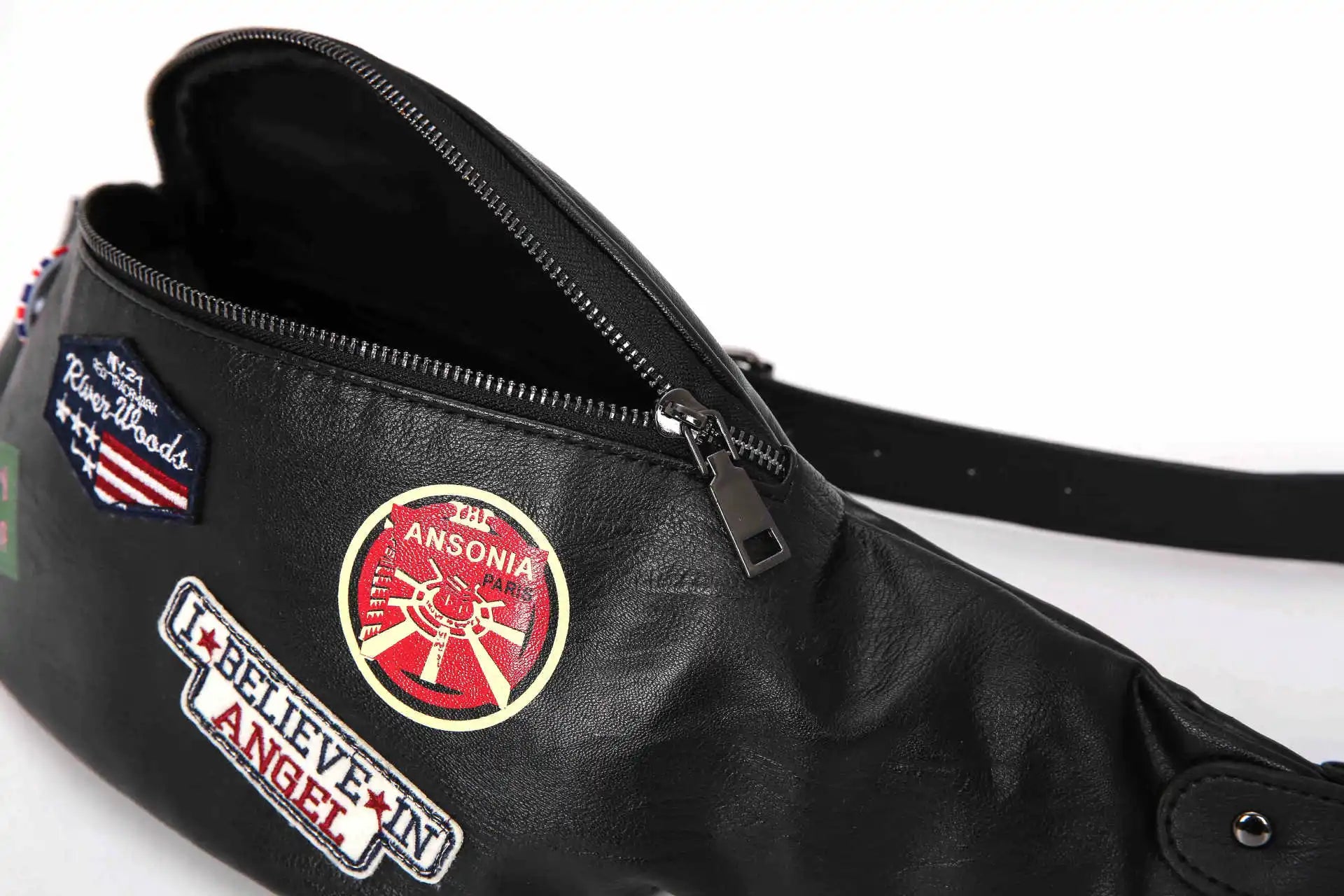 Elevate your casual look with this Trendy Crossbody Fanny Pack with Patches. Designed for those who appreciate a playful streetwear vibe, this stylish belt bag offers both fashion and functionality.