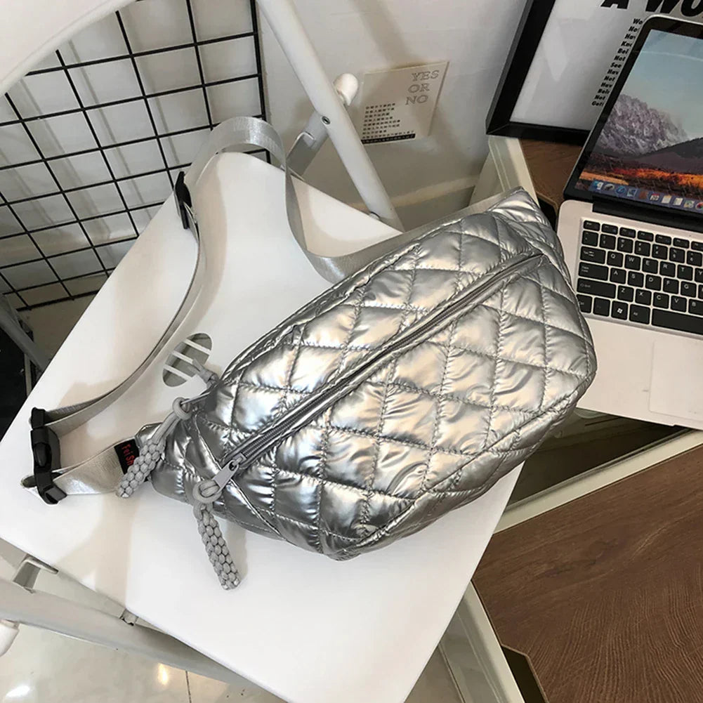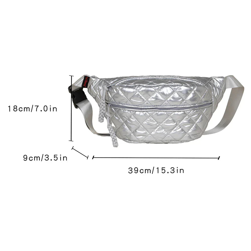 Elevate your style with this chic quilted metallic crossbody and waist bag, designed for the modern woman on the go. Crafted from lightweight, durable materials, it offers versatility and comfort. The adjustable strap allows you to wear it as a crossbody or waist bag, adapting seamlessly to your needs.