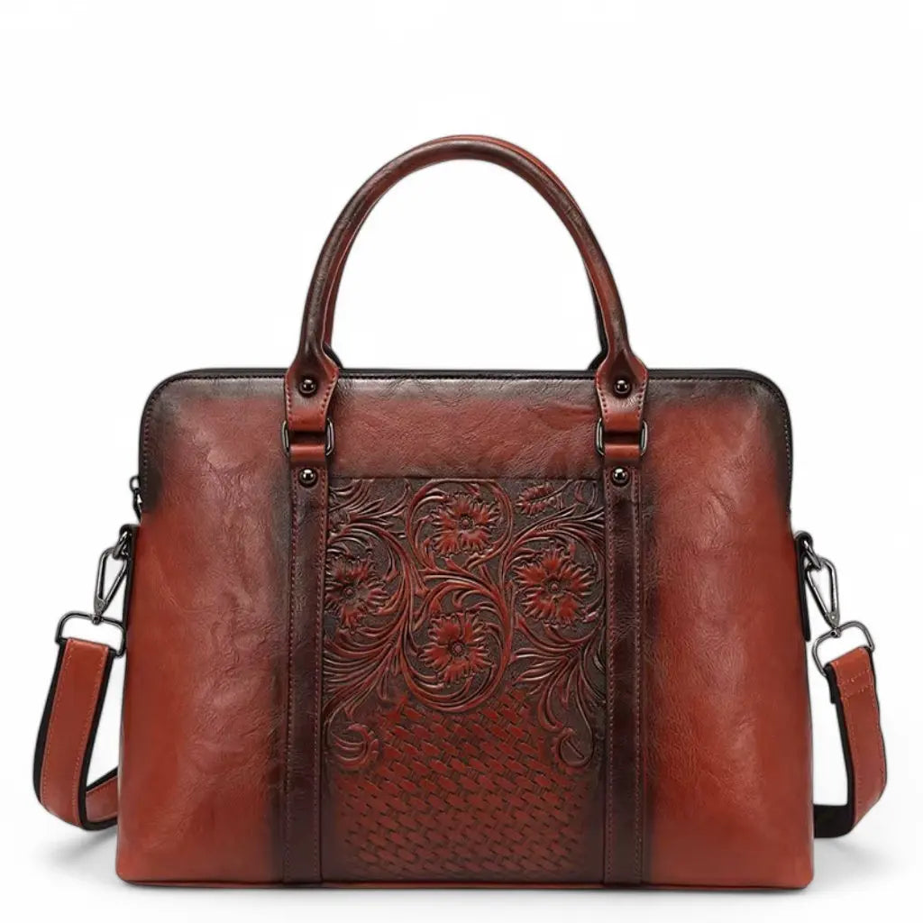 Discover the perfect blend of elegance and functionality with our Vintage Leather Laptop Bag for Women. Designed to fit 14-inch laptops, this bag features a unique floral motif that adds a touch of artistry to your professional attire.