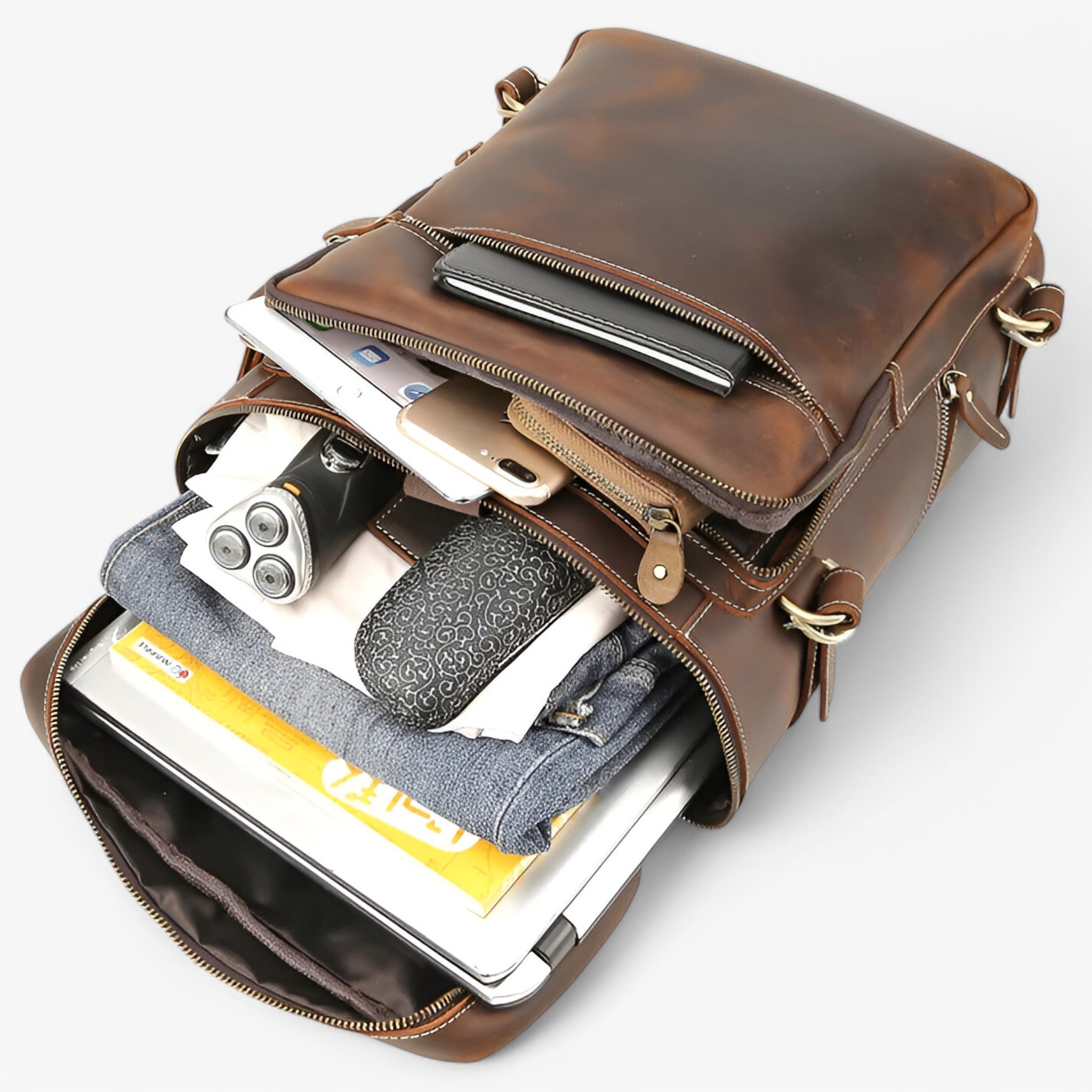 This vintage leather backpack and shoulder bag combines artisanal craftsmanship with timeless style. Made from premium full-grain leather, it offers both elegance and functionality β perfect for work, travel, or everyday use.