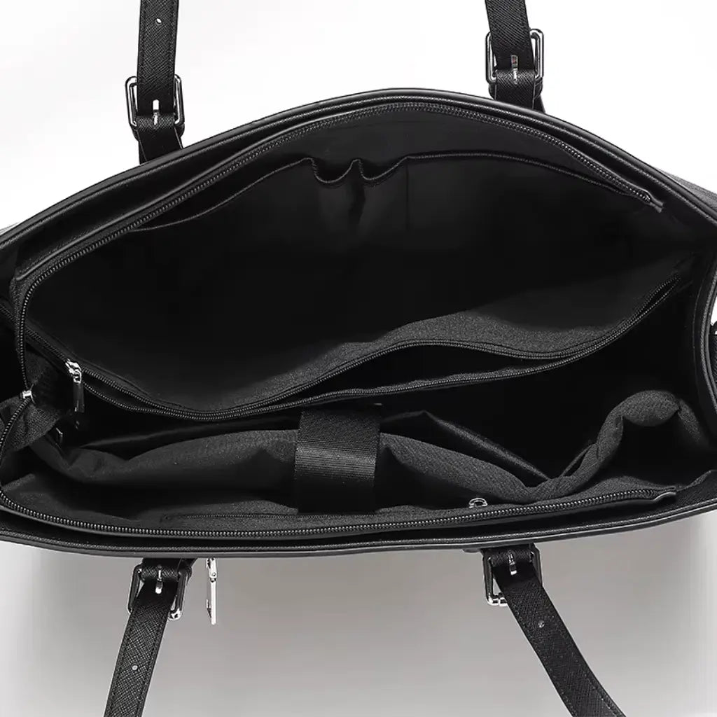 This Waterproof 15.6-inch Laptop Tote Bag merges sleek design and robust protection. Crafted from premium PU leather, this black laptop shopper is fully water-resistant — safeguarding your device and essentials during rainy commutes. The spacious main compartment fits a 15.6″ laptop with space to spare for documents, tablet, and accessories. Structured yet lightweight, it’s ideal for students, professionals, and everyday users. Sturdy handles ensure comfortable carrying, while the fine finishing adds durability and style. Whether heading to work, school, or meetings, this elegant laptop tote offers function and fashion in one.