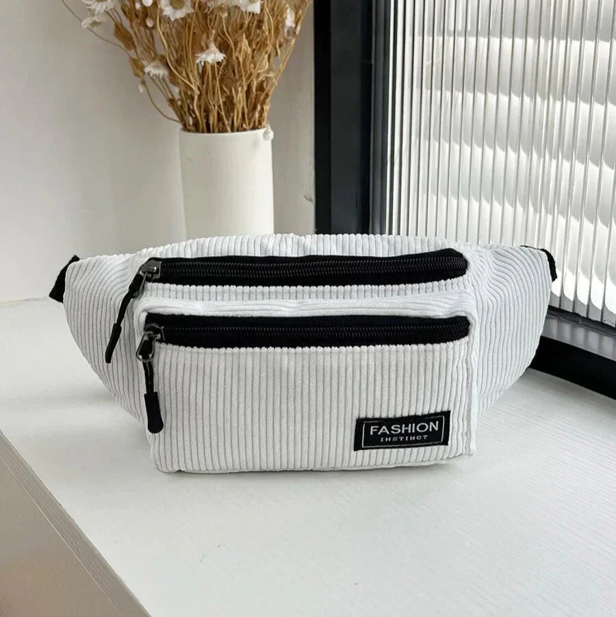 Elevate your daily essentials with this versatile white crossbody belt bag, designed for both fashion and function. Crafted from durable materials, it offers a lightweight yet sturdy option for those on the move. The adjustable strap allows you to wear it comfortably as a waist pack, crossbody, or shoulder bag, adapting to your preferred style. Multiple zippered compartments provide ample space to organize your phone, keys, cards, and other essentials, ensuring quick access when needed. Whether you're heading to work, traveling, or attending a festival, this bag seamlessly combines practicality with a sleek, minimalist design. Its neutral white color with contrasting black accents adds a touch of sophistication to any outfit. Stay hands-free and stylish with this must-have accessory.