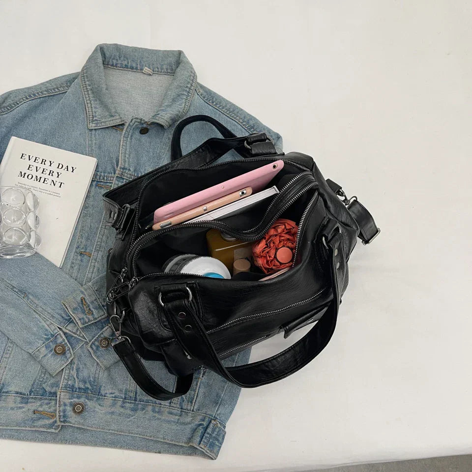 Elevate your daily essentials with this Women's PU Leather Shoulder Bag, designed for both style and functionality. Crafted from high-quality PU leather, this handbag offers a luxurious look without compromising on durability. Its spacious interior features multiple compartments, including dedicated pockets for your phone, keys, and makeup, ensuring effortless organization. The versatile design allows you to carry it as a shoulder bag or tote, adapting to your needs throughout the day. Whether you're heading to work, school, or a casual outing, this bag complements any outfit with its timeless appeal.
