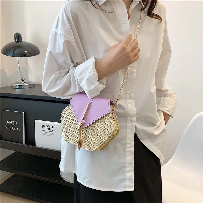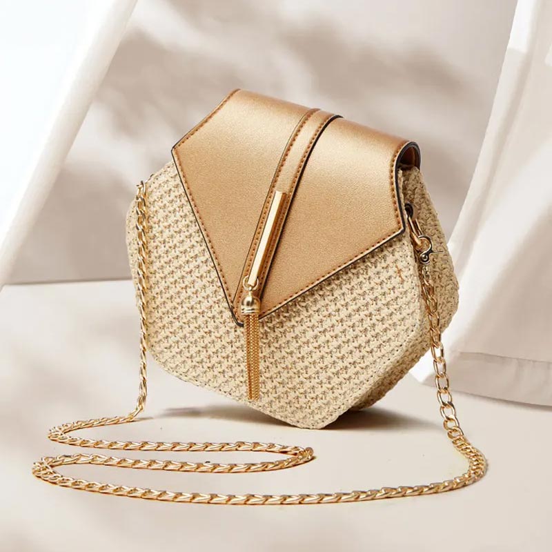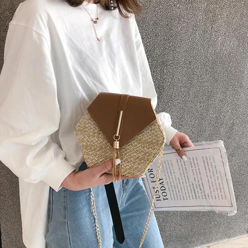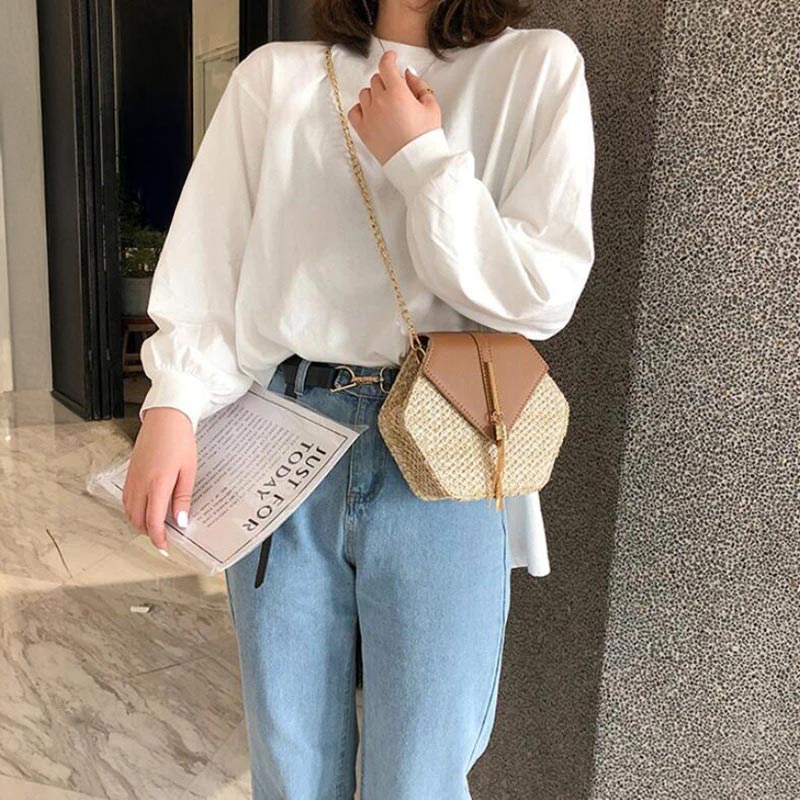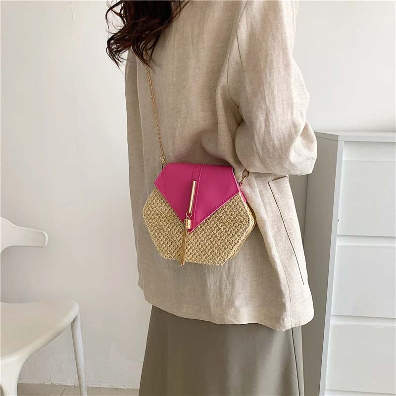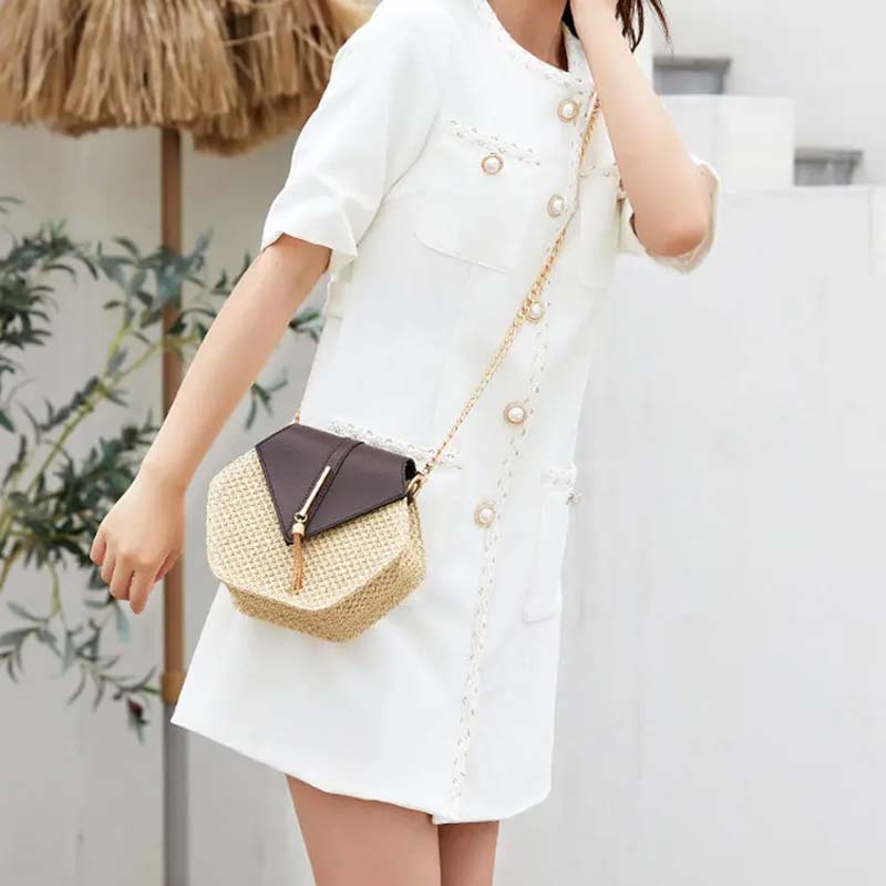 Elevate your summer style with this chic women's straw shoulder bag, featuring premium leather accents for a touch of sophistication. Perfectly sized to carry your essentials, it's ideal for beach outings, brunches, or casual day trips.