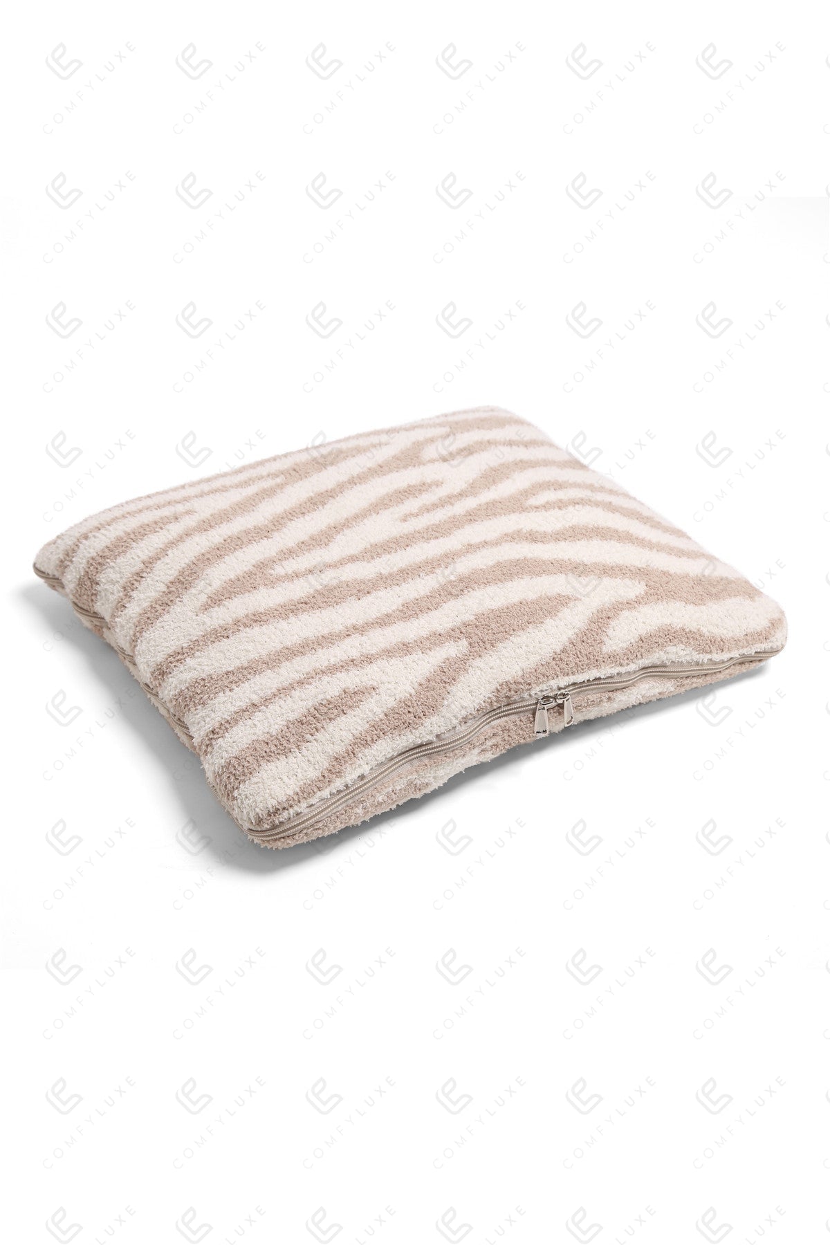 Add a touch of safari-inspired elegance to your home with this Zebra Print 2-in-1 Throw Blanket & Pillow. Crafted from 100% polyester microfiber, this versatile piece effortlessly transforms from a cozy throw blanket (127 × 152 cm) to a plush pillow (45 × 38 cm), offering both style and functionality. The beige zebra print adds a modern, exotic flair to any room, making it perfect for the living room, bedroom, or as a travel companion. Machine washable for easy care, this luxurious accessory combines comfort with chic design.